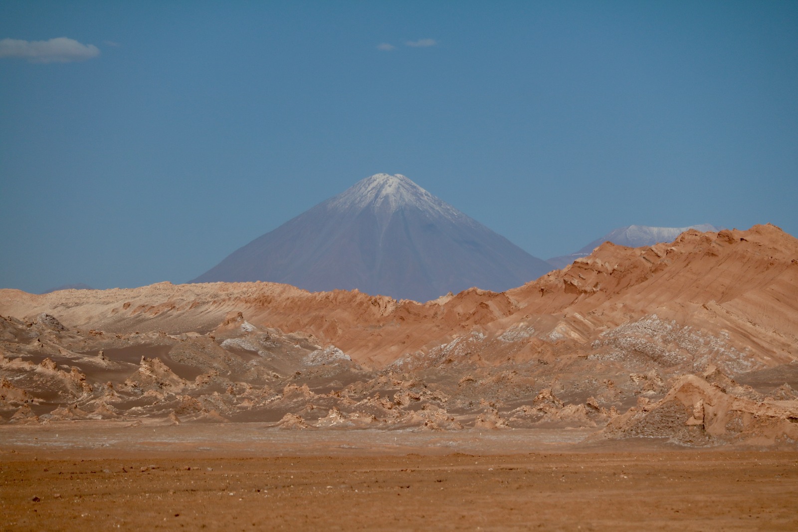 El Valle de la Luna debe su nombre a la asombrosa similitud de su relieve con la superficie lunar. Aquí, la sal, la arcilla y el yeso han sido modelados por millones de años de viento y agua, creando formaciones singulares, dunas majestuosas y crestas afiladas que parecen sacadas de otro planeta. Caminar por este paisaje es sumergirse en la profunda aridez del desierto más árido del mundo, en un entorno que invita al asombro, la contemplación y el silencio.