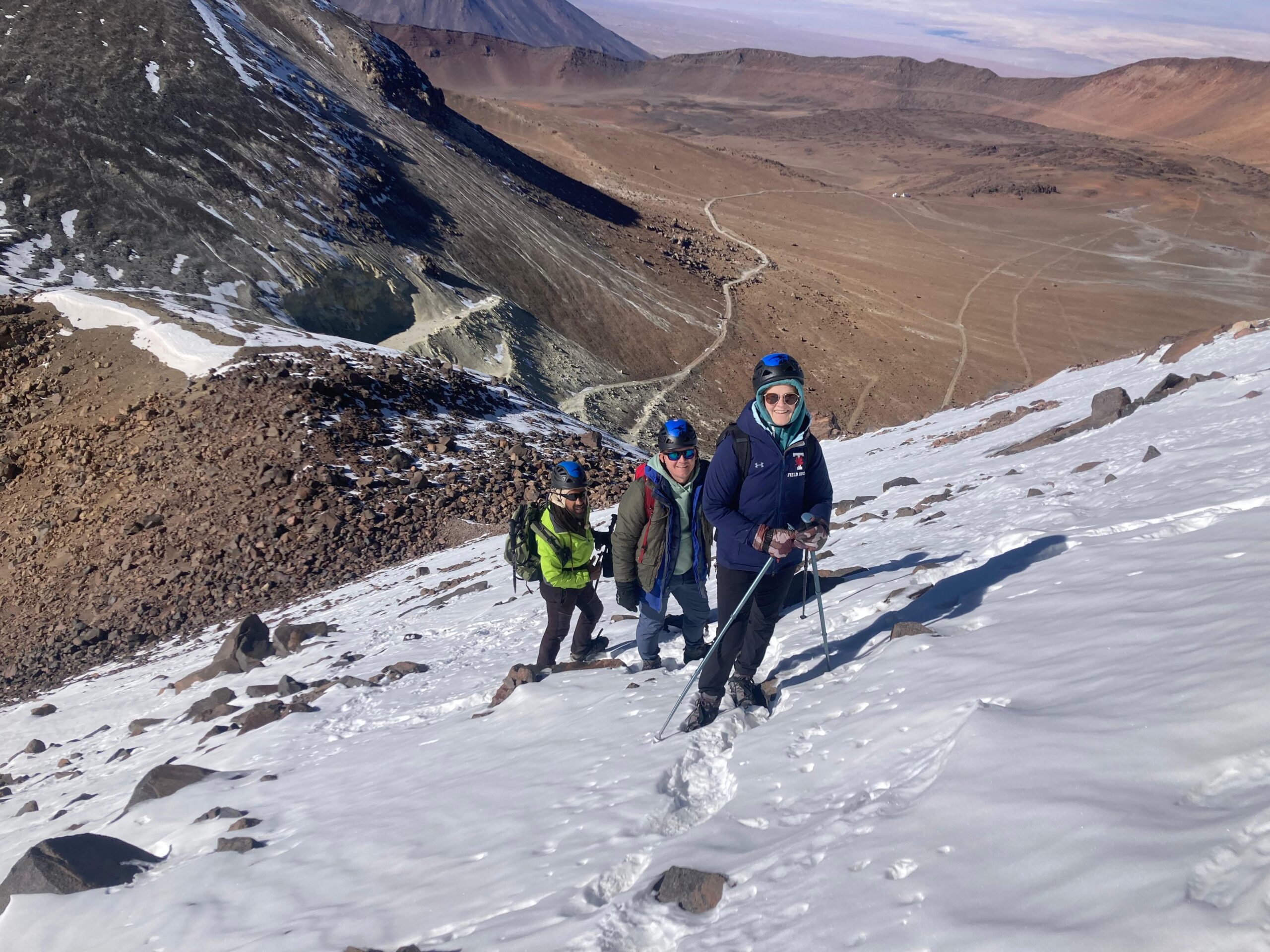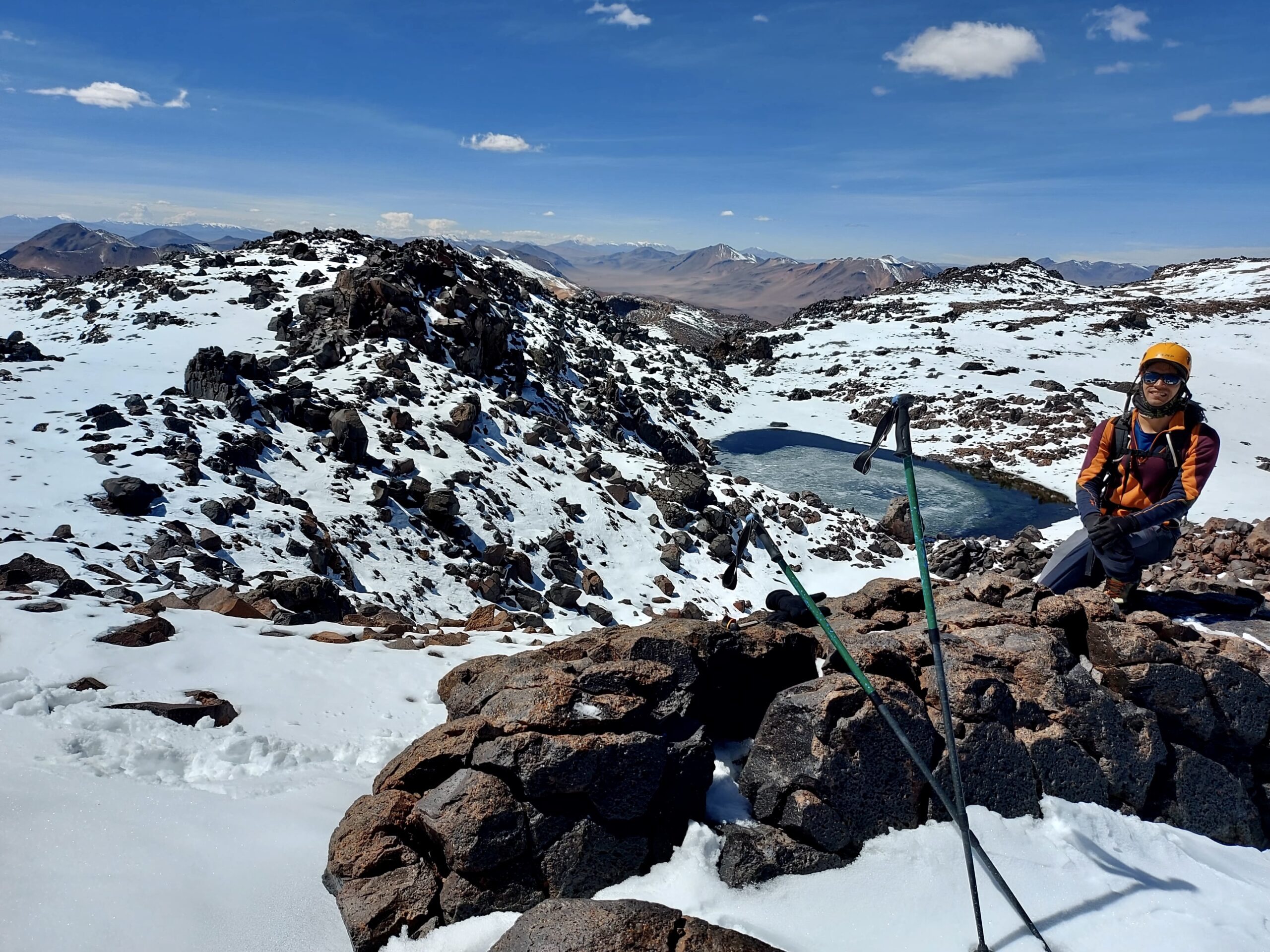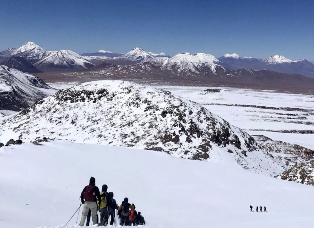La ascensión se inicia al sureste de San Pedro de Atacama, cruzando paisajes áridos y sobrecogedores, pasaremos por el poblado altiplanico Talabre y tomaremos desayuno frente a la impresionante Laguna Lejía (4.300 msnm). El ascenso recorre un sendero de 2,5 km hasta el cráter principal (5.500 msnm), con la opción de continuar hacia la cumbre de 5.592 msnm.